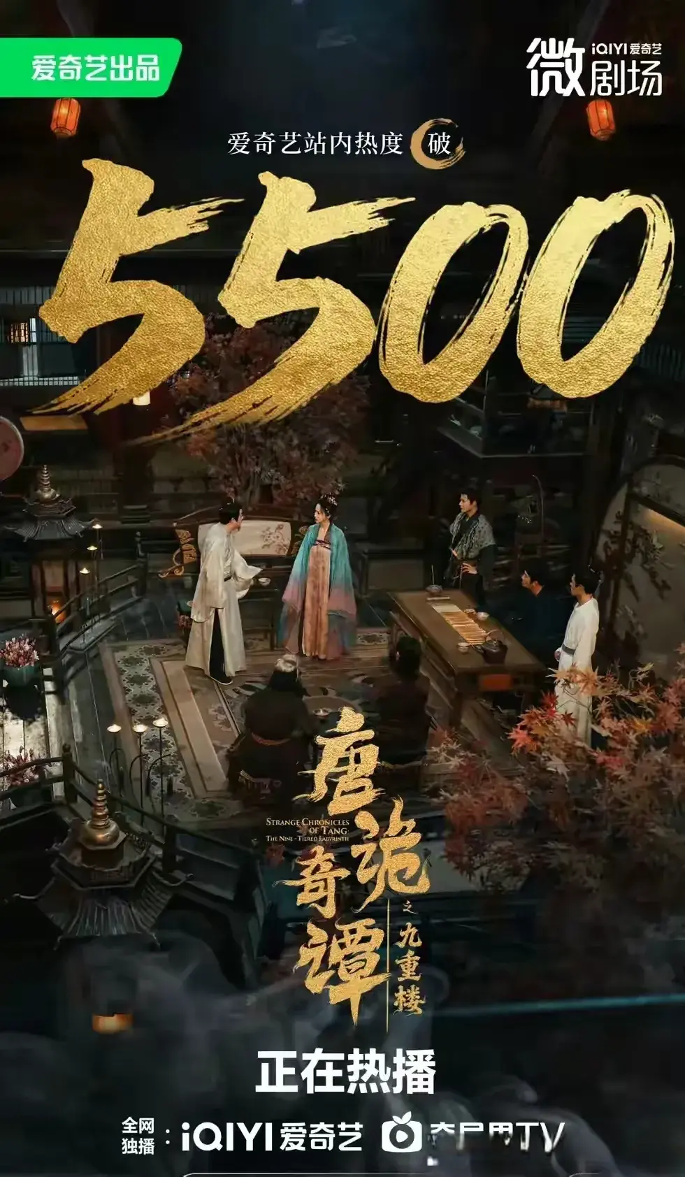 刚上线就直接杀疯了,热度一路狂飙突破5500+,强势横扫爱奇艺微剧热播榜、飙升榜、上新榜、热搜榜四大榜单第一,网友直呼“中式悬疑还得看唐诡”!