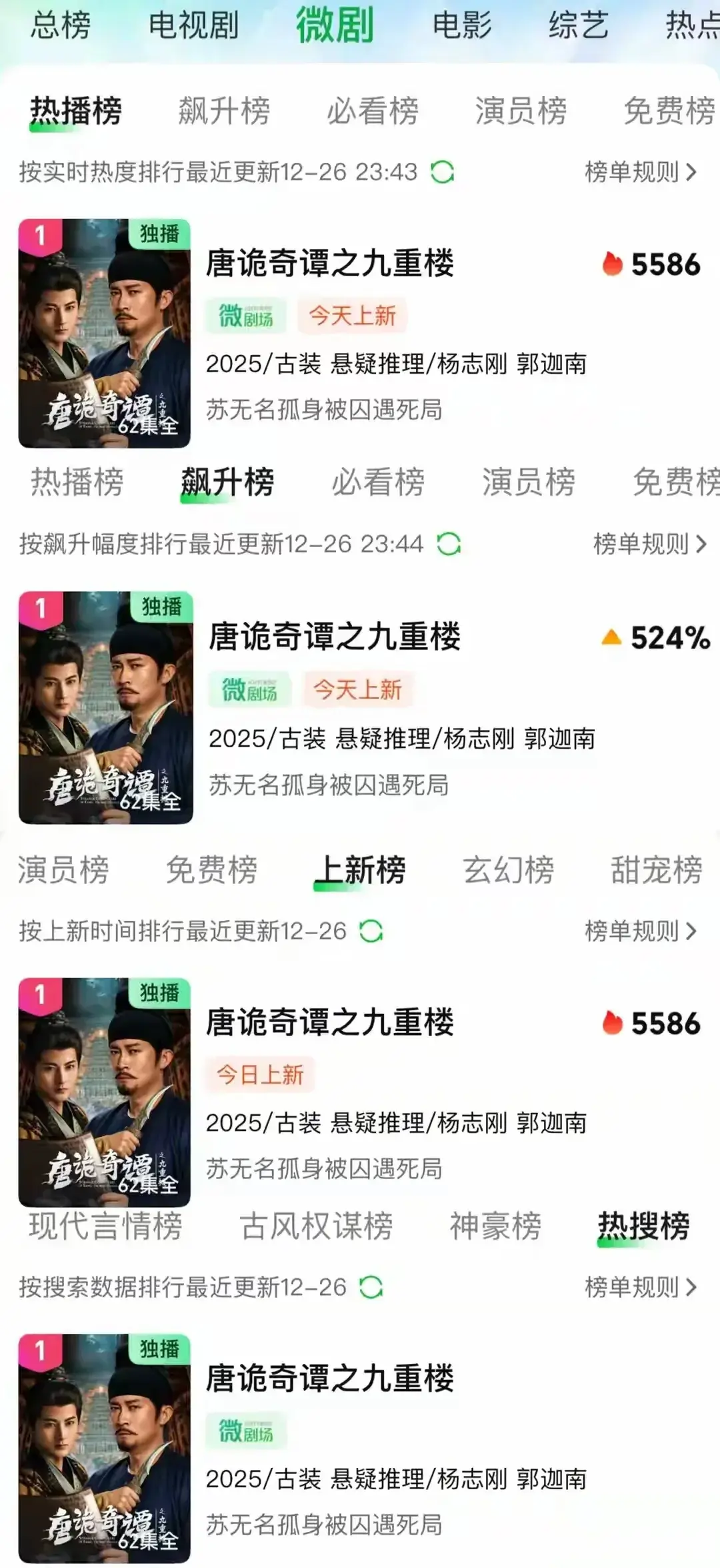从第一部到第四部,唐诡系列从来没让人失望过,这次《九重楼》用竖屏短剧的形式玩出新花样,首播就霸榜四大榜单,足以见得观众有多买账。